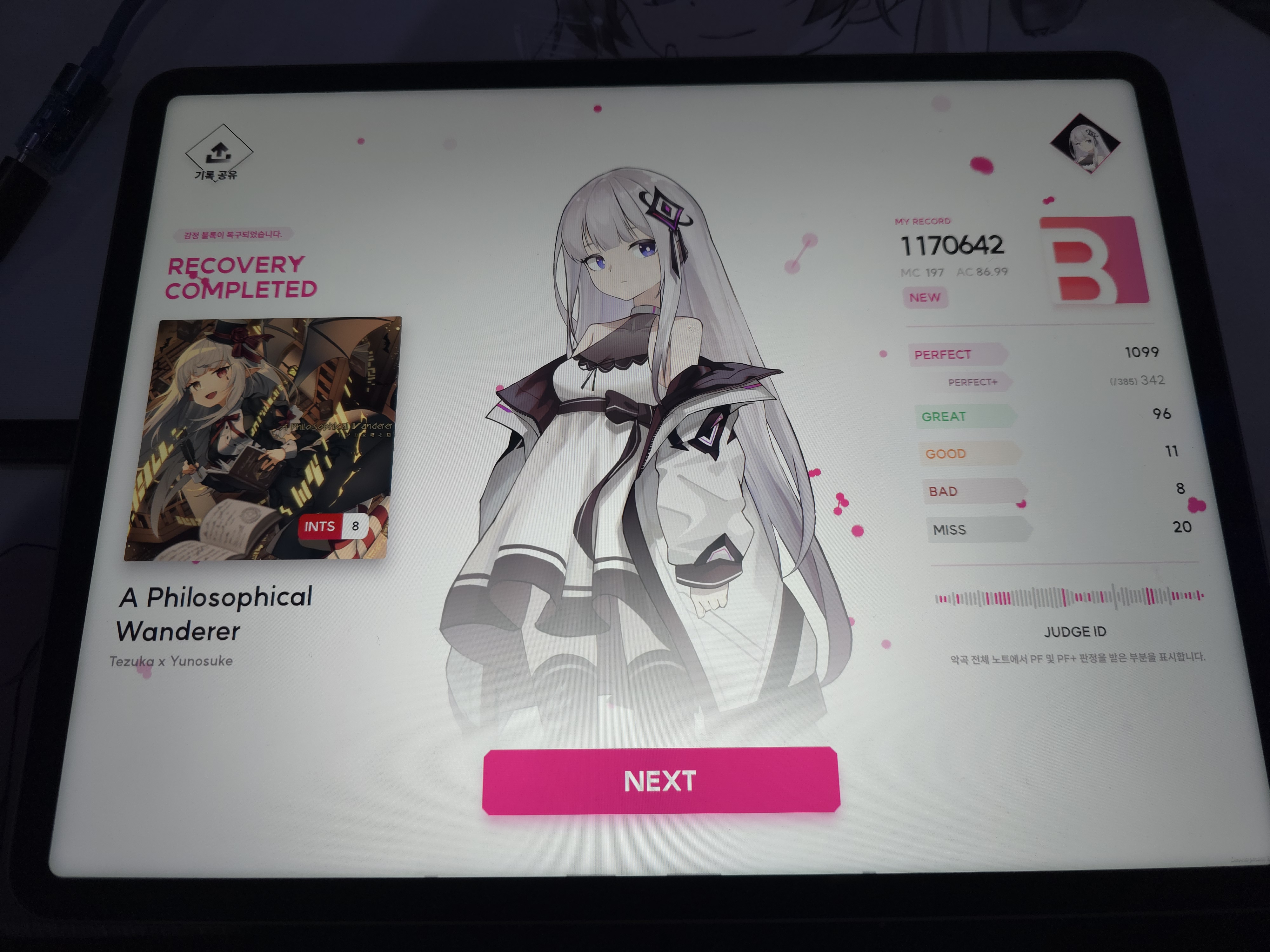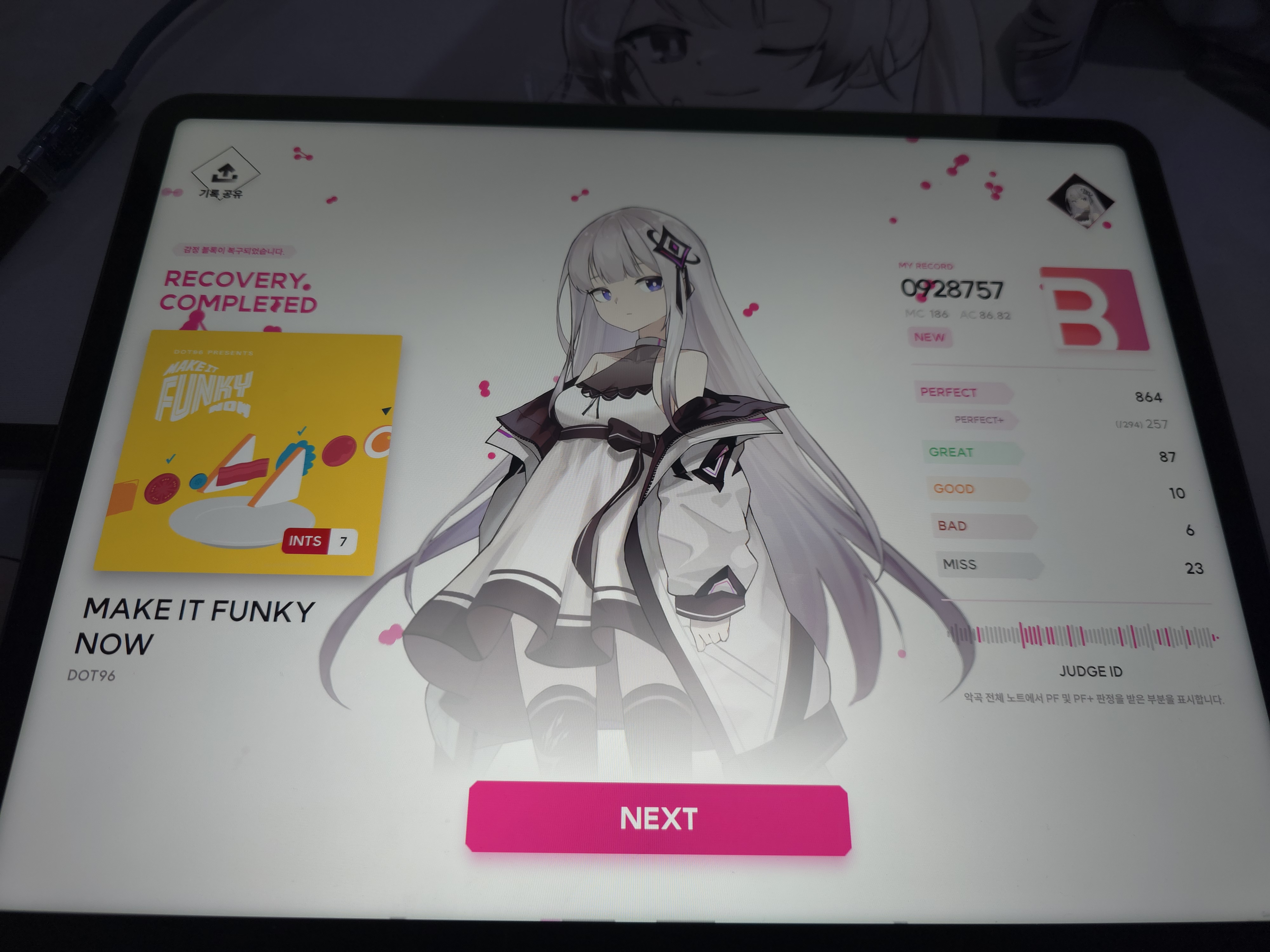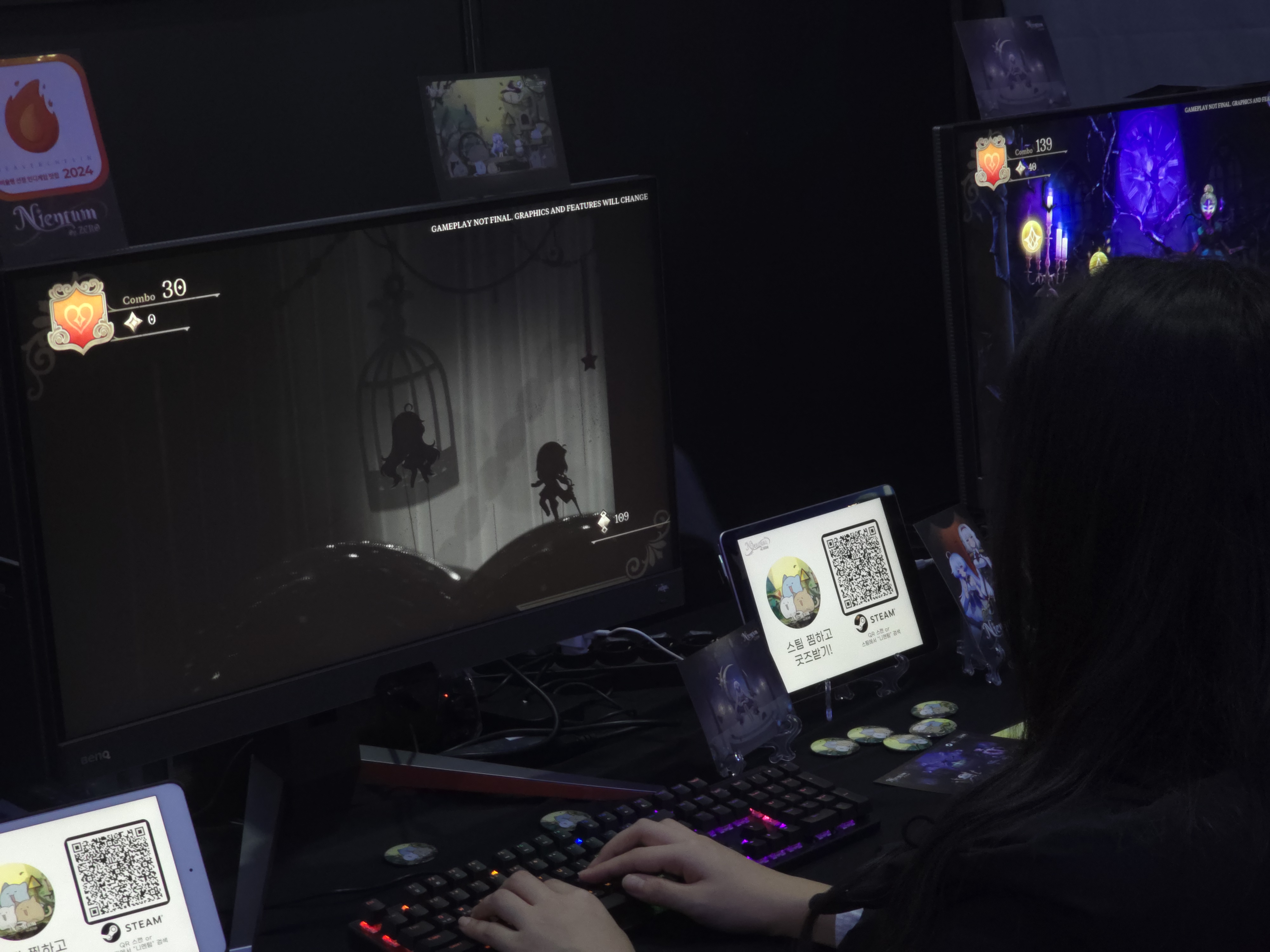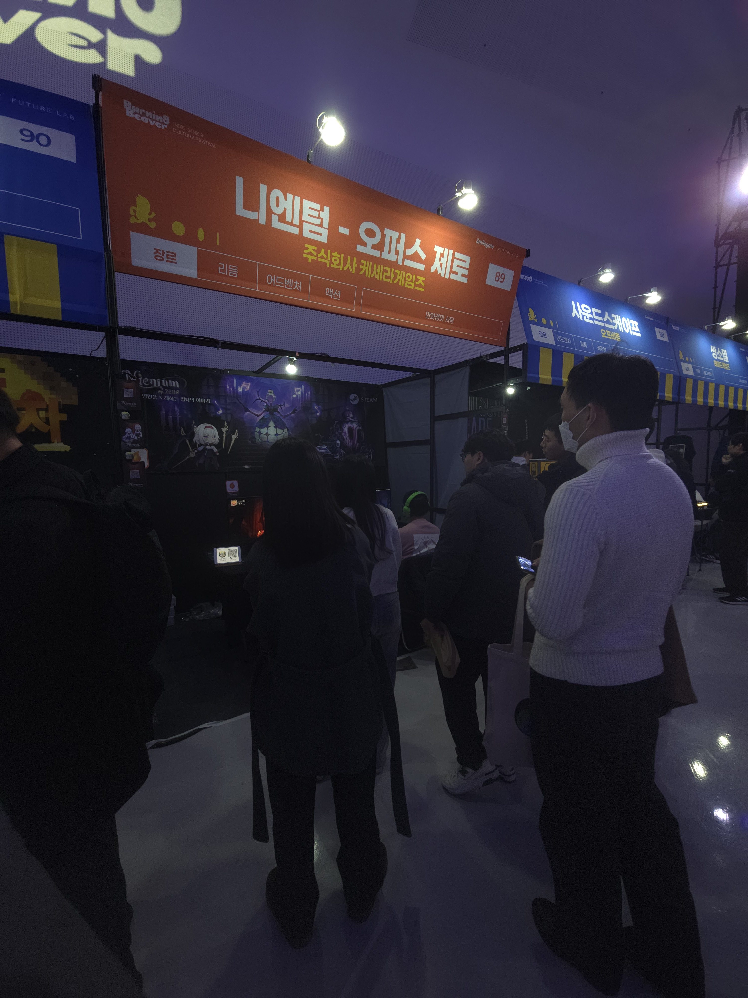 두번째로 소개할 게임은 차기 제3지대의 대표작 중 하나인 <KALPA 시리즈>의 케세라 게임즈가 제작한 신작 리듬게임인 <니엔텀: 오푸스 제로>이다. 니엔텀 역시 가장 파급력이 높았던 리듬게임 부스 중 하나였으며, 이 부스 역시 인기 부스의 상징인 ‘버슐랭 가이드’ 인증을 받게 되었다.