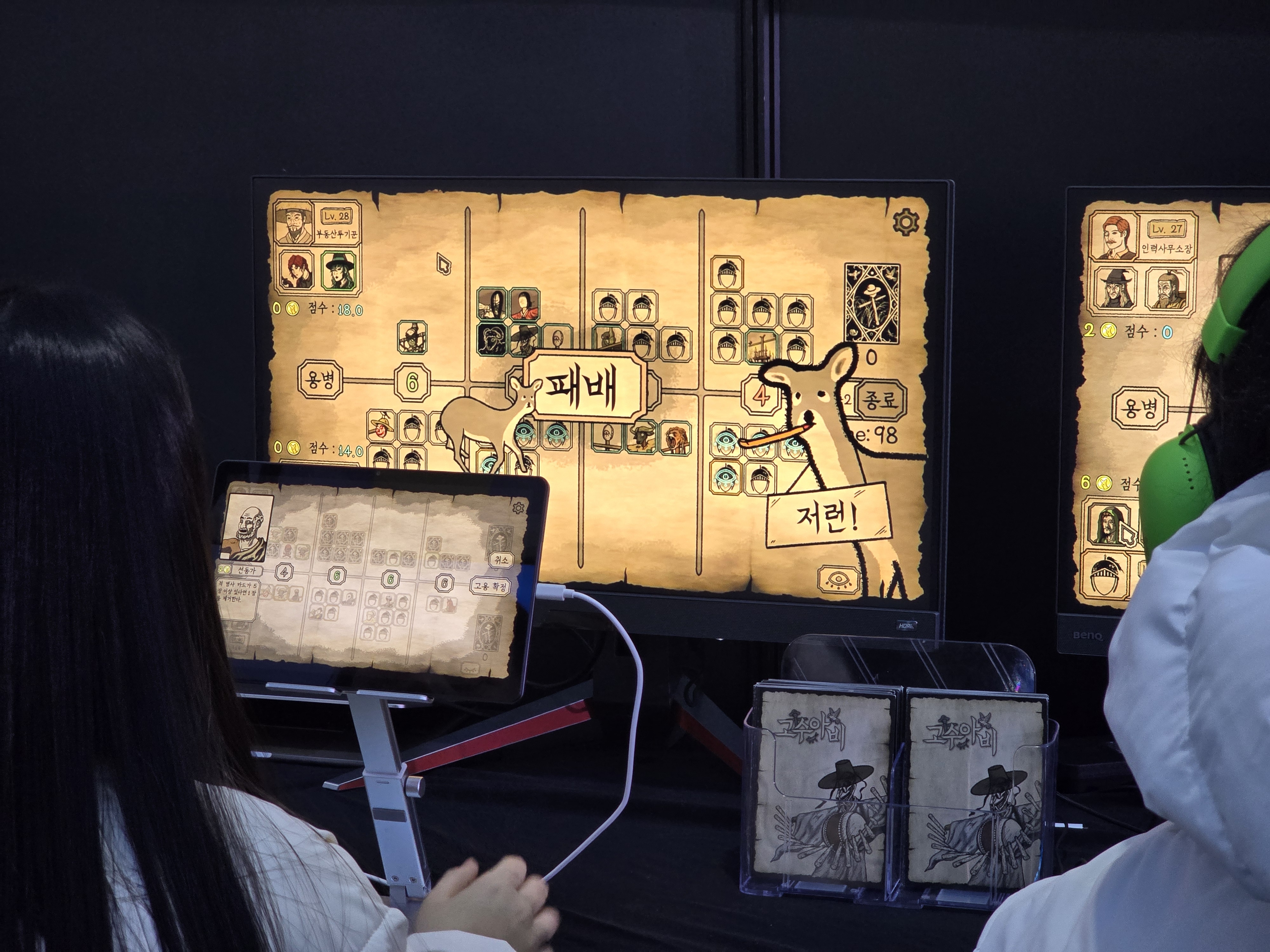 게임 특유의 작화 역시 고수아비의 매력 중 하나이다. 민화풍으로 나오는 다양한 허수아비의 비주얼과 게임의 NPC인 해골바가지와 바텐더, 그리고 양피지를 배경으로 한 게임 UI과 같이 투박하면서도 전통적인 한국의 전통 요소를 적절히 퓨전시켰으며, 튜토리얼에서 등장하는 해골바가지를 이기면 고라니에게 잡아먹히는 익살스러운 튜토리얼과 패배하면 고라니들한테 잡아먹히는 끔찍한(?) 패배 연출, 그리고 게임 곳곳에 등장하는 고라니 등등 게임 분위기 역시 게임의 가벼운 분위기와 어울려 게임의 유쾌함을 돋보이고 있다. 더욱 놀라운 점은 이 UI 디자인을 비롯한 고라니 및 고수아비의 작화를 담당한 사람이 샤이닝 고라니의 디렉터가 직접 그렸다고 하니, 여러모로 게임사명인 ‘샤이닝 고라니’에 어울리는 광기어린 애정이라 볼 수 있겠다. 실제로 전시된 굿즈 또한 다양한 고수아비 카드들과 산타 복장을 한 고라니가 매우 시선을 사로잡았다.