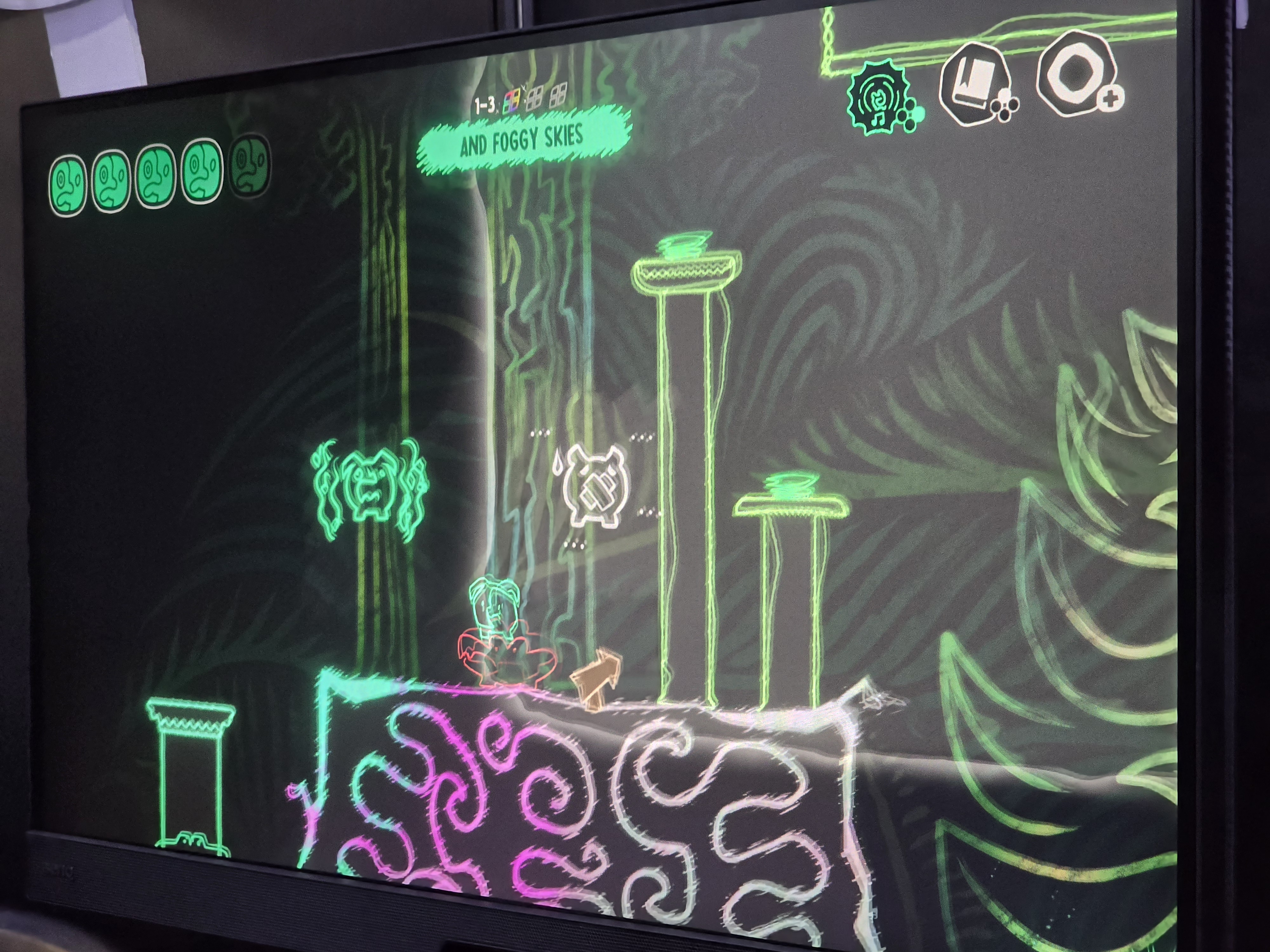 이 게임의 소개 문구에서도 드러나듯이 이 게임은 인간의 감정을 모티브로 움직이고 공격하는 플렛포머 게임이며, 감정의 속성에 따라 모노가 받아들이는 공격 및 행동 역시 달라진다. 노란색의 행복은 더 높은 곳까지 폴짝 뛰어오를 수 있는 점프력 강화, 파랑색의 슬픔은 흐물흐물 녹아내려 좁은 틈 사이를 지나갈 수 있어 움직임의 반경을 넓혀주고, 빨간색의 분노는 마음 속의 화를 원동력 삼아 벽을 박차고 올라갈 수 있다. 연두색의 불안은 예민한 감각으로 위험한 곳을 안전하게 지나갈 수 있어 가시밭길과 같은 험한 곳을 자유롭게 오갈 수 있다. 이처럼 다양한 감정의 속성을 살린 이 게임은 더욱 게임의 세계관을 다채롭게 만드는데 큰 역할을 하고 있다.
