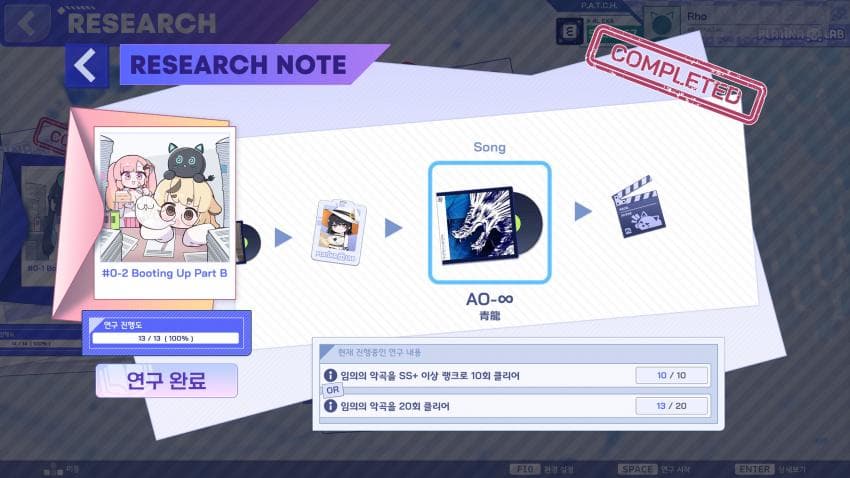 특히 연구일지가 A, B로 나뉘어 각각 별도로 곡을 해금해야 한다는 점은 많은 플레이어에게 호불호가 크게 갈렸다. 각 일지마다 별도의 해금 트리가 존재해 곡 클리어, 노트 정확도, 판정 달성 등 반복적인 과제를 두 번씩 수행해야 하는 구조는 플레이어의 피로도를 크게 높였다. 더욱이 해금되는 곡이 일지마다 다르게 분리되어 있어, 플레이어는 일지 A를 완료한 후에도 일지 B에서 다시 처음부터 반복 플레이를 강요받게 된다. 해금 난이도의 장벽을 낮추기 위해 복수의 조건을 도입했으나, 연구일지 루트까지 이 방식을 적용한 점은 플라티나 랩의 무리수라는 평을 듣고 있다.
