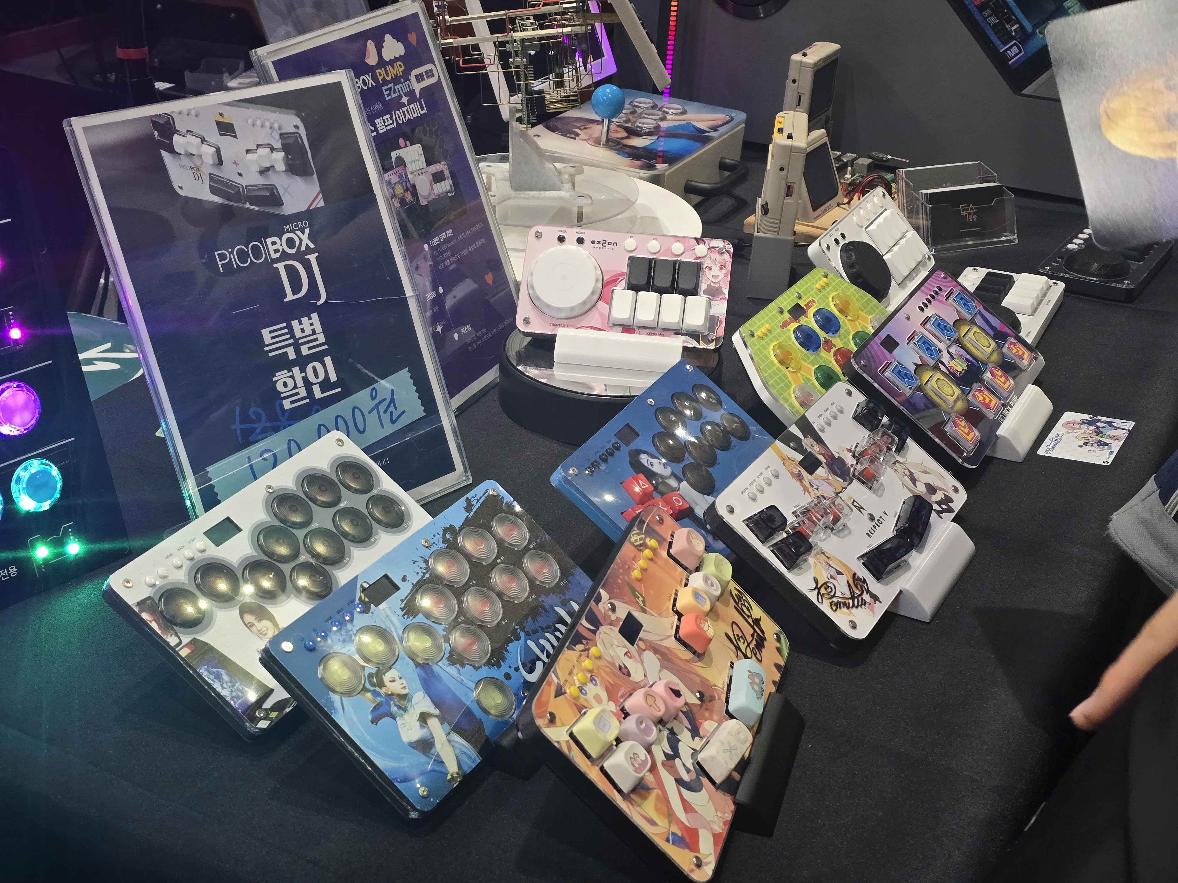 이와 함께 부스에서 많은 이들의 눈길을 사로잡은 또 다른 제품은 이세계공방의 리듬게임 전문 컨트롤러였다. 복잡한 입력 메커니즘을 단순하고 직관적으로 개선하기 위해 기계식 키보드 입력 방식을 채택해 리듬게임을 처음 접하는 이들도 쉽게 사용할 수 있도록 설계되었다. 대표적인 예로, 디제이맥스와 같은 PC 기반 리듬게임에 최적화된 ‘피코박스 DJ’와, 향후 발매를 예정하고 있는 펌프 잇 업 라이즈와 더불어 이지투온, BMS 등 건반 기반 리듬게임에 적합하게 설계된 ‘피코박스 펌프/이지미니’가 소개되었다. 이들 컨트롤러는 각각의 리듬게임 플랫폼에 최적화된 디자인과 성능을 통해 개인의 플레이 환경을 개선할 수 있는 가능성을 제시했다.