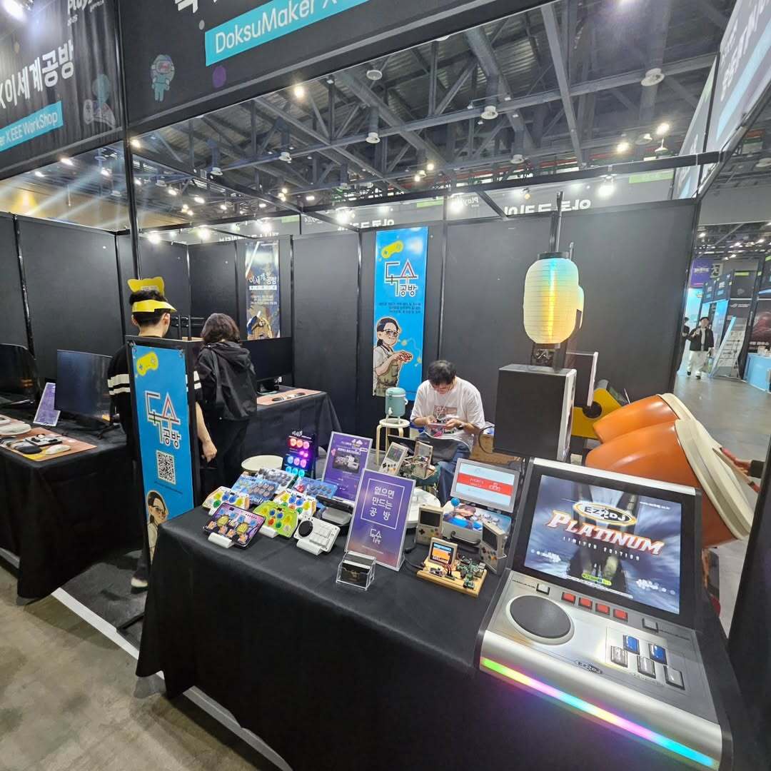 또한, 소형 컨트롤러 외에도 큰 주목을 받은 프리미엄 라인업으로는 태고의 달인을 연상케 하는 대형 북 컨트롤러 ‘타타콘’과 이지투 시리즈의 아케이드 기체를 소형화한 ‘EZ2DJ’가 있었다. 특히, 이지투온 아케이드 시리즈를 PC화하거나 소형화한 제품은 과거의 추억을 확실히 소환하며 많은 게이머들에게 뜨거운 반응을 얻었다. 독수공방×이세계공방 부스는 단순한 제품 전시에 그치지 않고, 방문자들이 직접 컨트롤러를 사용해 보고 체험할 수 있는 기회를 제공하며 독특한 사용자 경험과 기술 혁신을 전달했다. 이 부스는 전통과 혁신이 어우러진 제품들로 방문객들을 사로잡은 동시에, 리듬게임과 하드웨어 제작의 접근성이라는 장벽을 허무는 새로운 가능성을 제시하는 자리로 기억되었다.