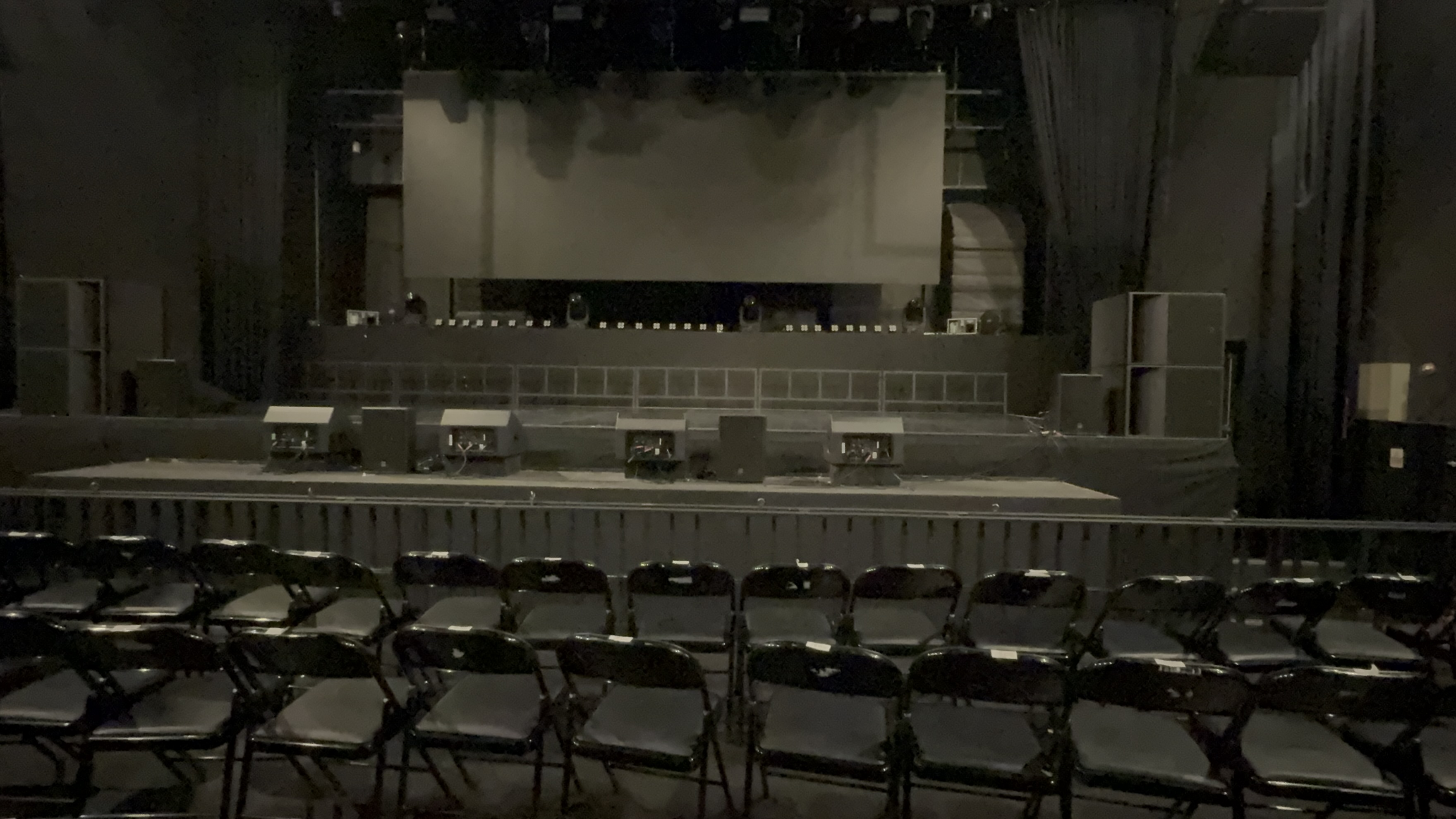 김태용 하우스 매니저 : 저희 공연 무대는 4m × 15m(세로 4미터, 가로 15미터)로 구성된 무대를 갖고 있고요. 뒤쪽에는 LED 스크린과 빔(Beam) 라이트, 하이라이트 조명들이 있고, 위쪽에는 조명으로 무빙(Moving) 라이트 1대와 PAR(파) 라이트 3대가 설치되어 있습니다. 양쪽에는 메인 스피커, 아래에는 서브우퍼들이 있고요. 그리고 아티스트를 위한 모니터 스피커(또는 모니터 앰프)가 총 6대 준비되어 있습니다.