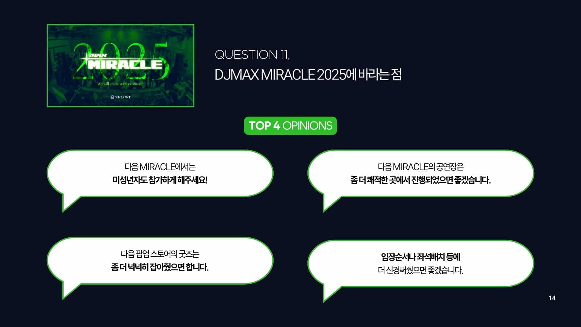 이번 라이브 뷰잉 지원은 대한민국 리듬게임 장르에서 최초로 진행하는 콘서트 라이브 뷰잉임과 동시에, 지난 ‘미라클:드라이브’ 콘서트에서 팬들이 보여준 뜨거운 성원과 요구사항을 적극적으로 반영한 결과로 풀이된다. 특히 작년 자체적으로 진행한 설문조사인 ‘K리겜 연말정산 – 디제이맥스 미라클 편’에서 ‘미성년자 참여’ 다음으로 가장 많은 요구였던 ‘지방권 참여’가 이번 라이브 뷰잉을 통해 해소되면서, 전국 팬들의 접근성이 크게 향상될 것으로 기대된다.