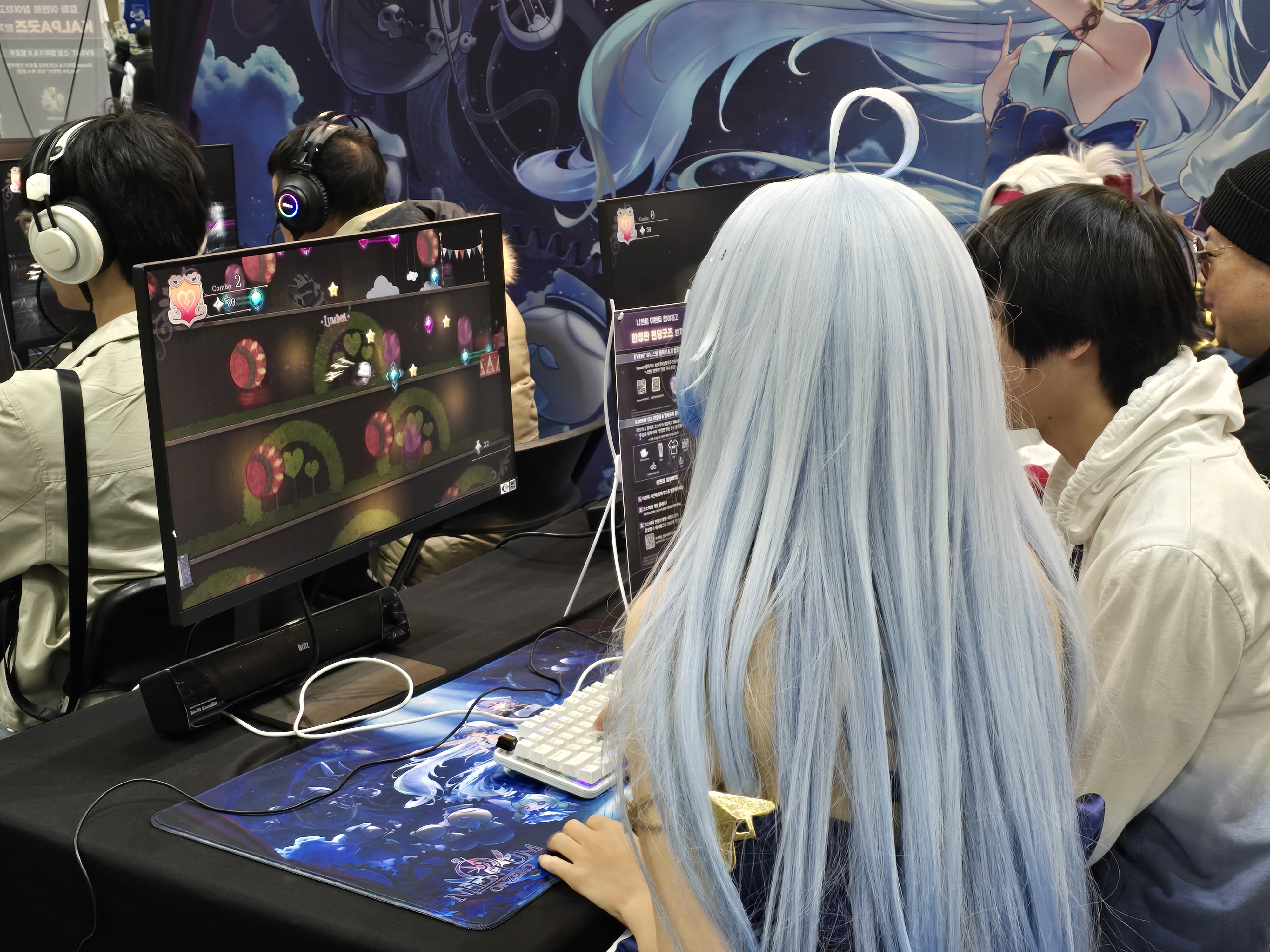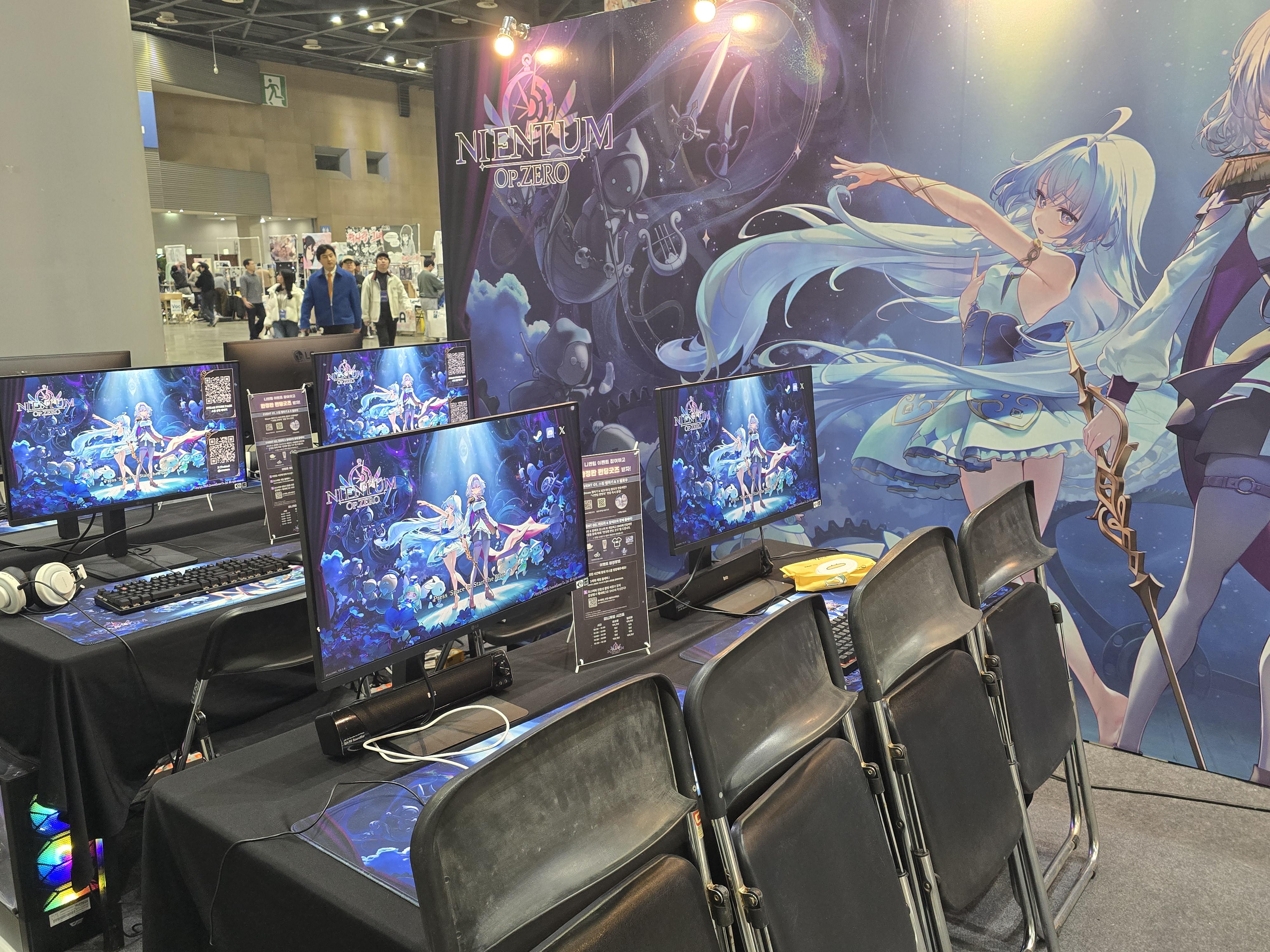 ‘뮤지컬 러닝 플랫포머’를 표방하는 ‘니엔텀 오푸스 제로’ 부스도 높은 관심을 받았다. 동화와 연극, 무대 연출이 어우러진 이 리듬게임은 스토리와 서사를 중시하는 점에서 호평을 받고 있으며, 이번 행사에서는 전문 코스플레이어 햇냥과 악희가 각각 ‘리오라’와 ‘알레프’로 분장해 게임 속 캐릭터를 실제로 구현한 듯한 높은 퀄리티의 코스프레를 선보였다. 그 밖에도 니엔텀의 조연 캐릭터인 ‘먼치킨’의 인형 키링 역시 현장 한정판매로 나오면서 이목을 끌기도 했다.