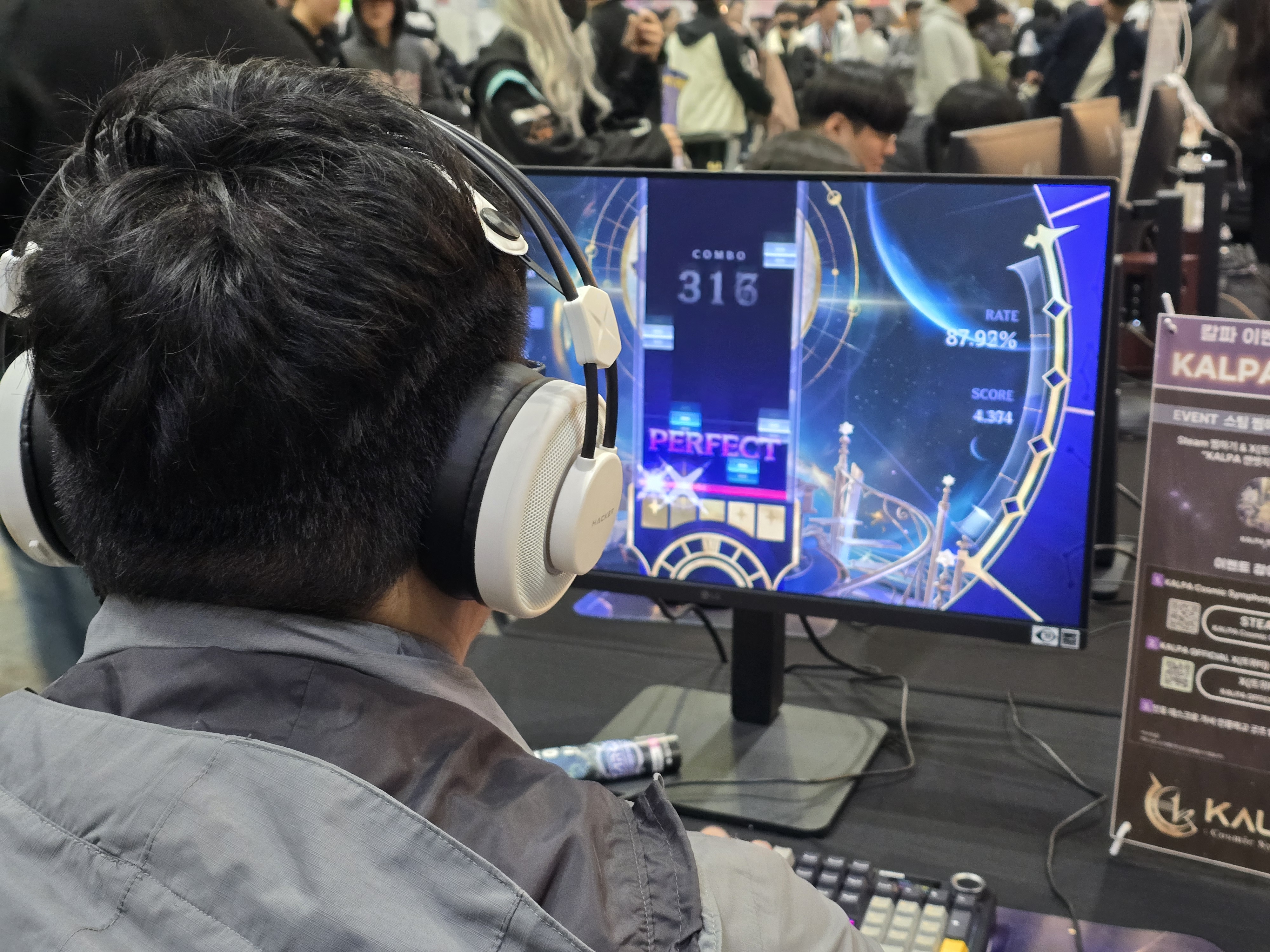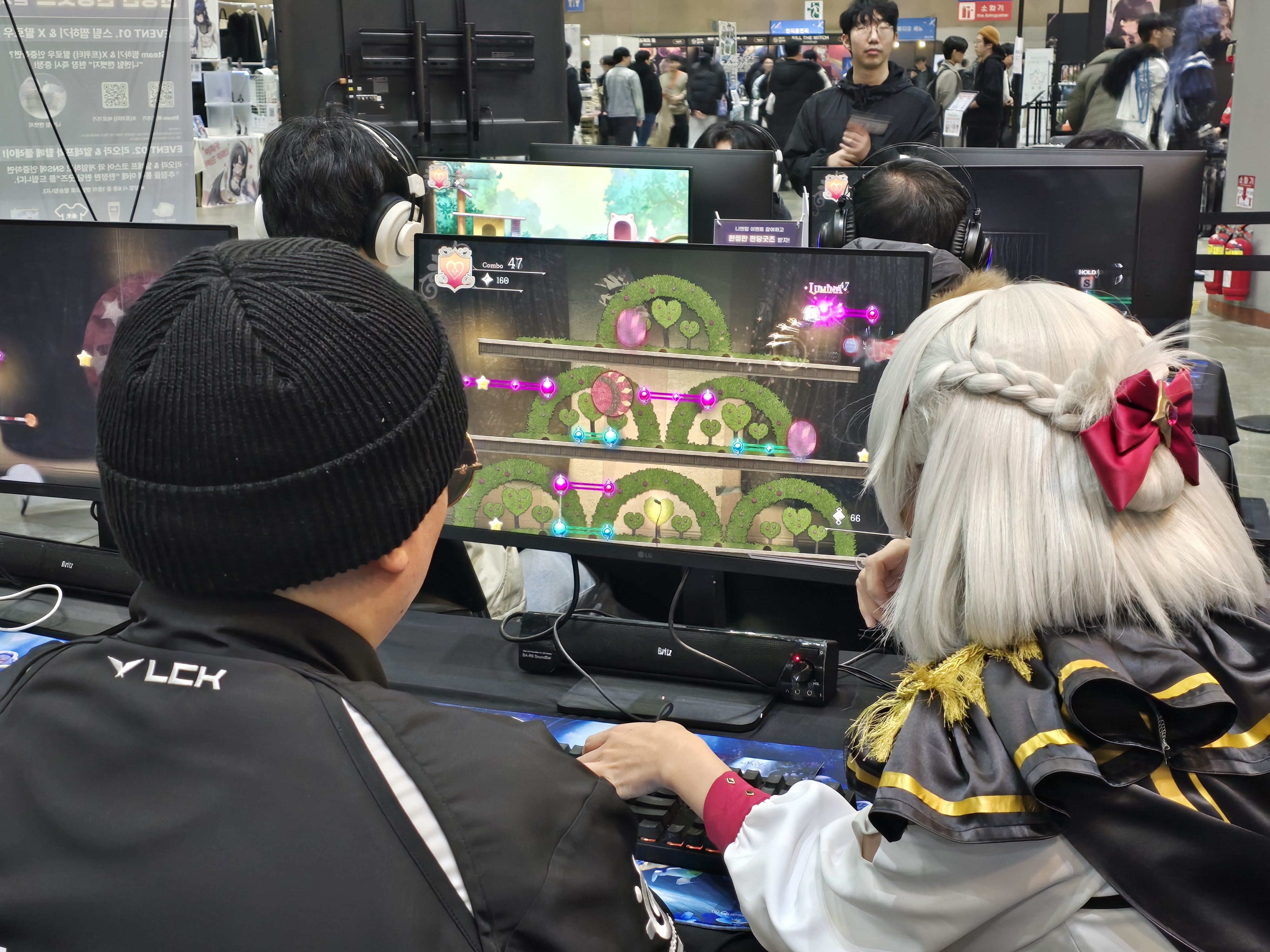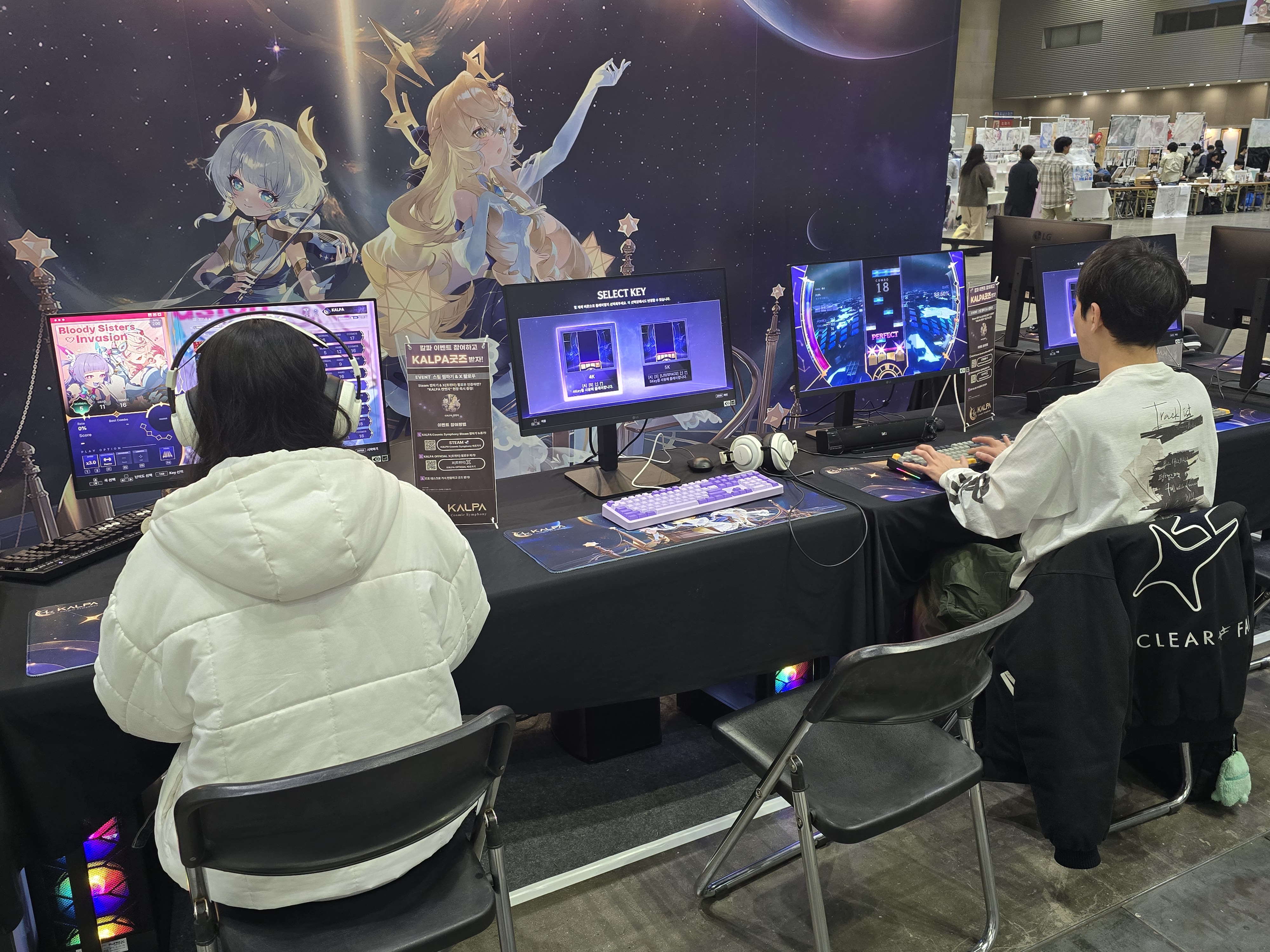 이번 부스에서는 2026년 첫 대형 업데이트인 ‘카메리아’ 아티스트 콜라보레이션 콘텐츠와 ‘아스트라’ 모드를 직접 체험할 수 있도록 마련했다. 현장에서는 장패드 3종, 게임 코드(28% 할인), 인기 DLC 4종 번들(First Forte, 카메리아, MASS RECALL -OMEGA-, Origin Vol.1) 등 다양한 굿즈가 판매됐으며, 원작 모바일 게임의 마스코트 ‘일찍새’ 인형 키링이 현장 한정으로 준비되어 팬들의 소장 욕구를 자극했다.