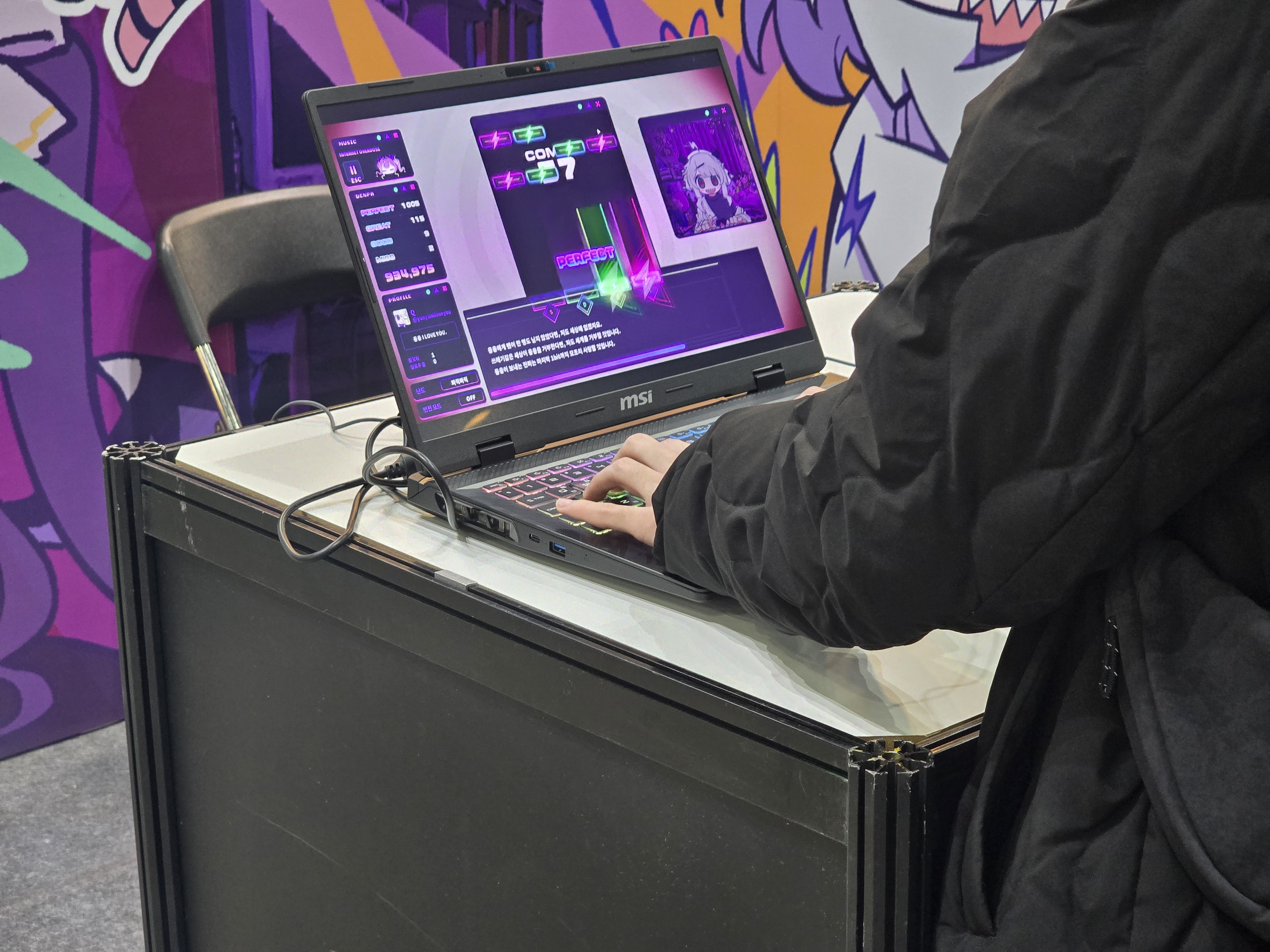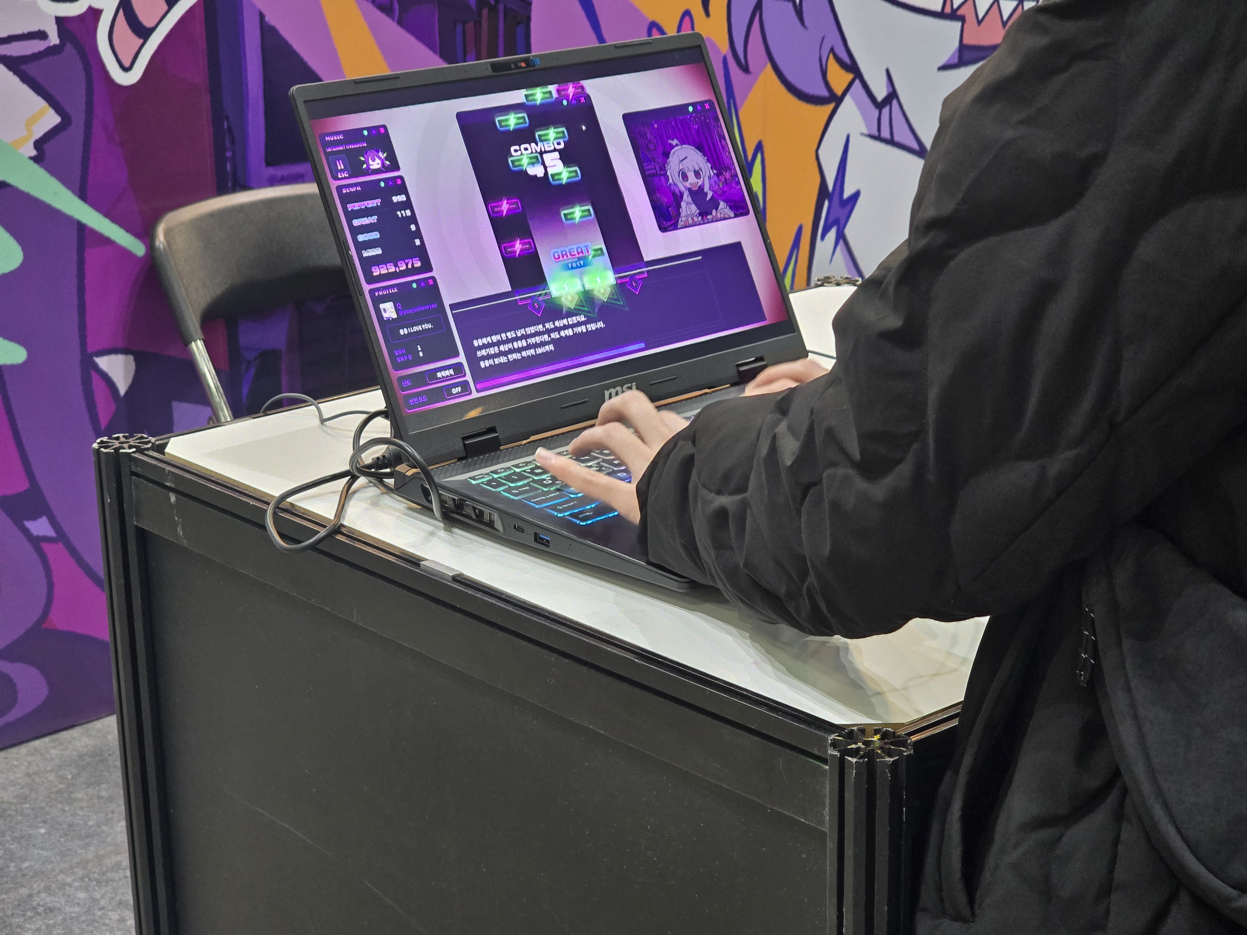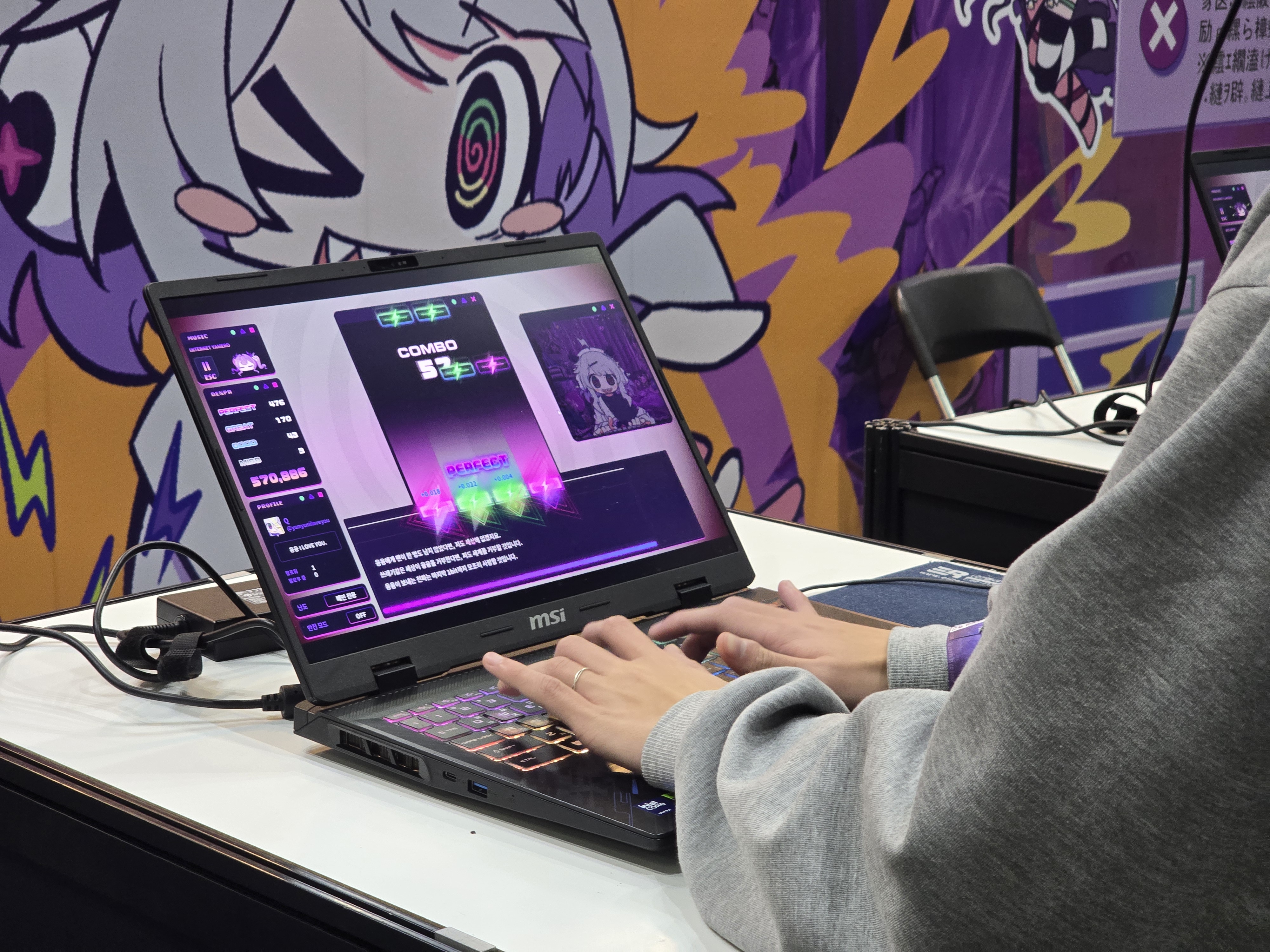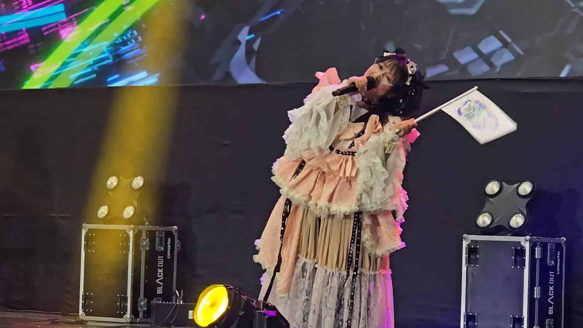 부스 현장의 데모 시연뿐 아니라, 메인 무대 행사에서도 강렬한 존재감을 드러냈다. 22일 열린 ‘일러스타 DJ 커넥트’ 무대에서는 융융 전파 신드롬이 스페셜 게스트로 초청되었고, 게임 내 융융의 성우를 맡은 일본의 유명 성우이자 가수 모모이 하루코가 직접 무대에 올랐다. 그는 오프닝 곡인 <전파적 망상 미소녀 Q>, <행복 절정!! Rim de Lacent☆>를 포함해, 세대별로 잘 알려진 다양한 전파곡과 애니메이션 음악을 한 시간가량 열정적으로 선보여 현장을 찾은 팬들의 뜨거운 환호와 함께 행사장은 열광적인 분위기로 가득 찼다.
