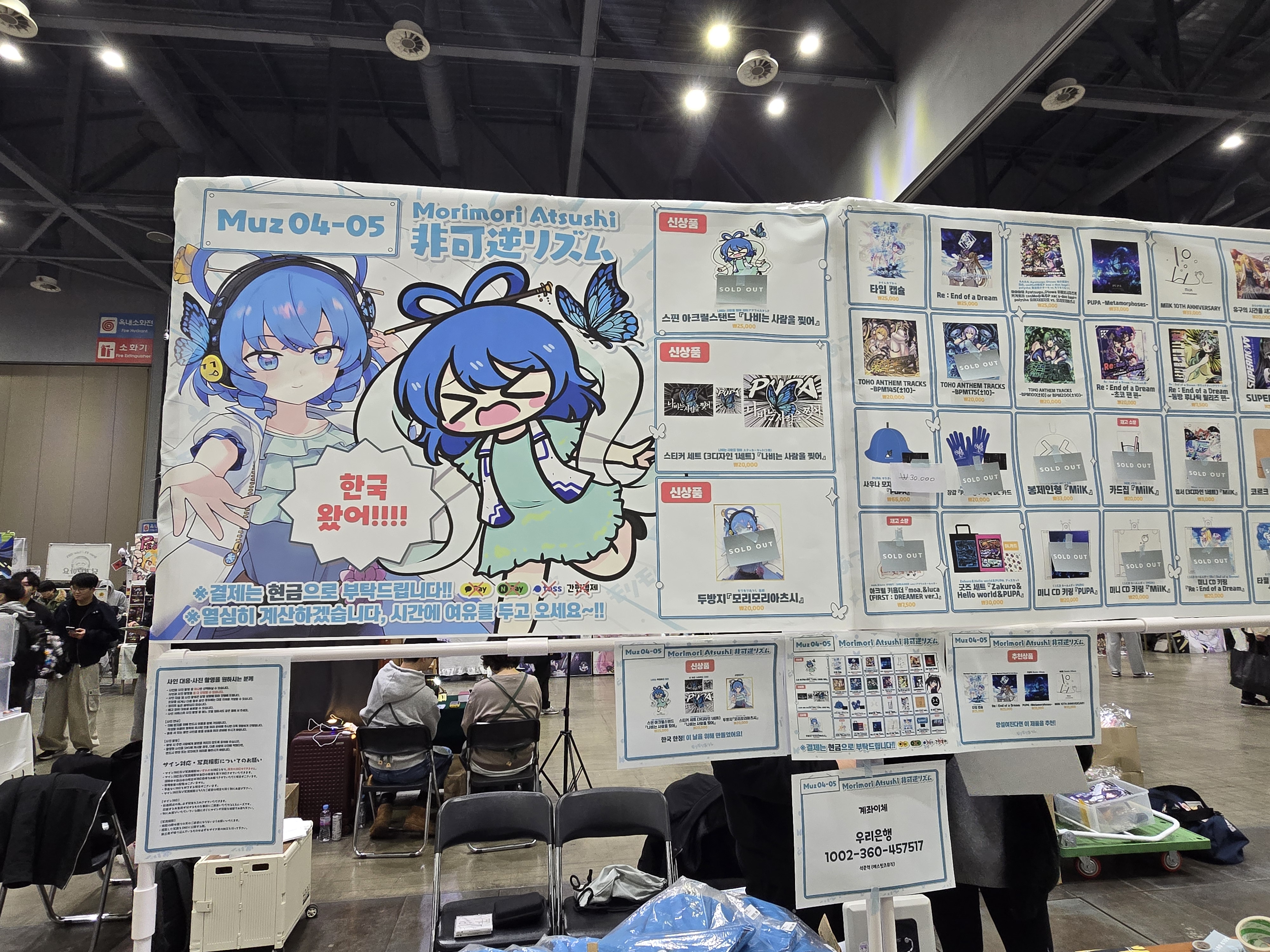 모리모리아츠시의 단독 부스도 방문객들로 인산인해를 이뤘다. 그의 대표곡이자 ‘나비는 사람을 찢어’라는 밈을 만든 보스곡 ‘PUPA’를 테마로 꾸며진 이 부스에서는 PUPA와 MilK의 10주년 기념 음반 <PUPA -metamorphoses->와 <MilK 10TH ANNIVERSARY>를 중심으로, 두 곡을 소재로 한 여러 가지 굿즈도 함께 판매됐다. 특히 한국 팬들을 위해 특별히 제작된 ‘나비는 사람을 찢어’ 스핀 아크릴 스탠드와 스티커 세트는 기발한 아이디어로 현장에서 큰 인기를 끌었고, 판매 첫날 대부분의 굿즈가 품절되는 모습을 보였다.