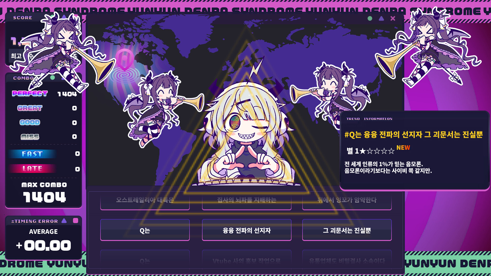 이번에 소개할 Alliance Arts의 <융융 전파 신드롬>은 이런 경계를 과감히 넘은 작품이다. 히키코모리 소녀 ‘Q’가 ‘융융’을 만나 전파송에 빠지고, 그들의 이야기가 인터넷을 혼란에 빠뜨린다는, 특유의 캐릭터성과 서사를 자랑하는 리듬 어드벤처다. 나나히라가 참여한 오프닝 <전파적 망상 미소녀 Q>를 비롯해 수록곡 전반에 걸쳐, 전파송을 단순한 포인트가 아닌 세계관의 중심으로 삼았다.