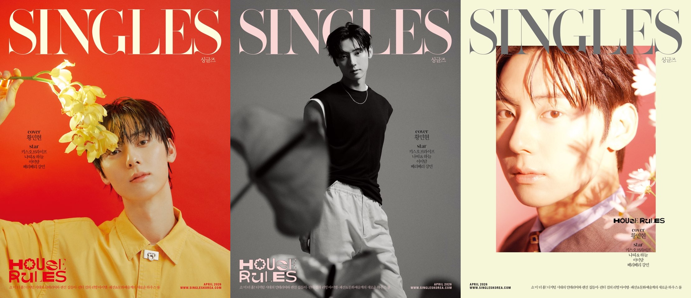 12일 소속사 플레디스 엔터테인먼트에 따르면 황민현은 ‘싱글즈 코리아’와 ‘싱글즈 재팬’ 4월호에 커버 스타로 참여했다. 이날 공개된 커버 3종은 ‘꽃의 하루’를 테마로 황민현의 싱그러운 비주얼을 담아내 눈길을 끈다. 봄의 정취가 물씬 풍기는 화사한 사진부터 부드러운 아우라가 돋보이는 흑백 커버까지 그의 팔색조 매력이 돋보인다.