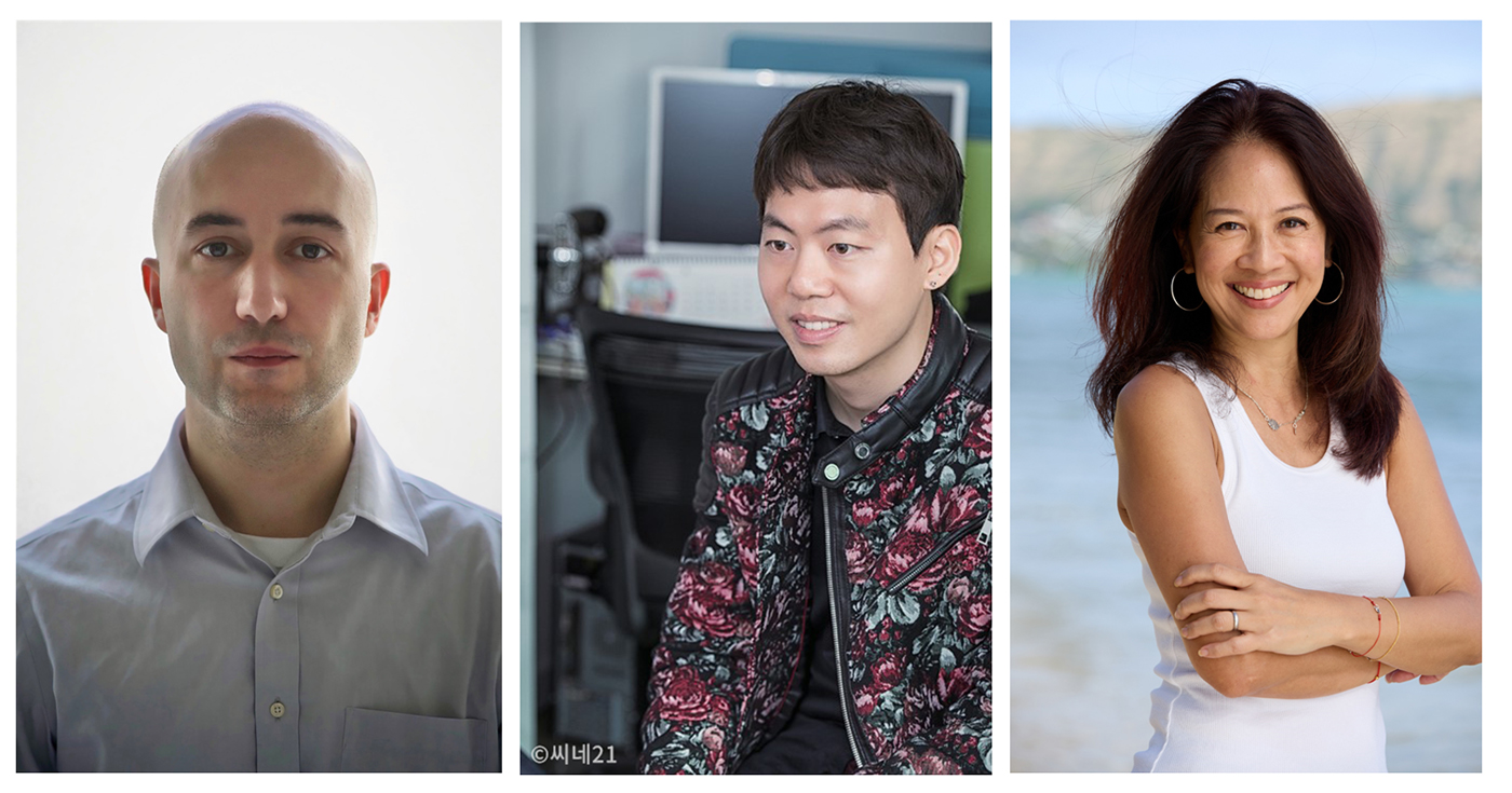 ▲(왼쪽부터) ‘넷팩상’ 심사위원 뱅자맹 일로스·김승환·크리스탈 궉